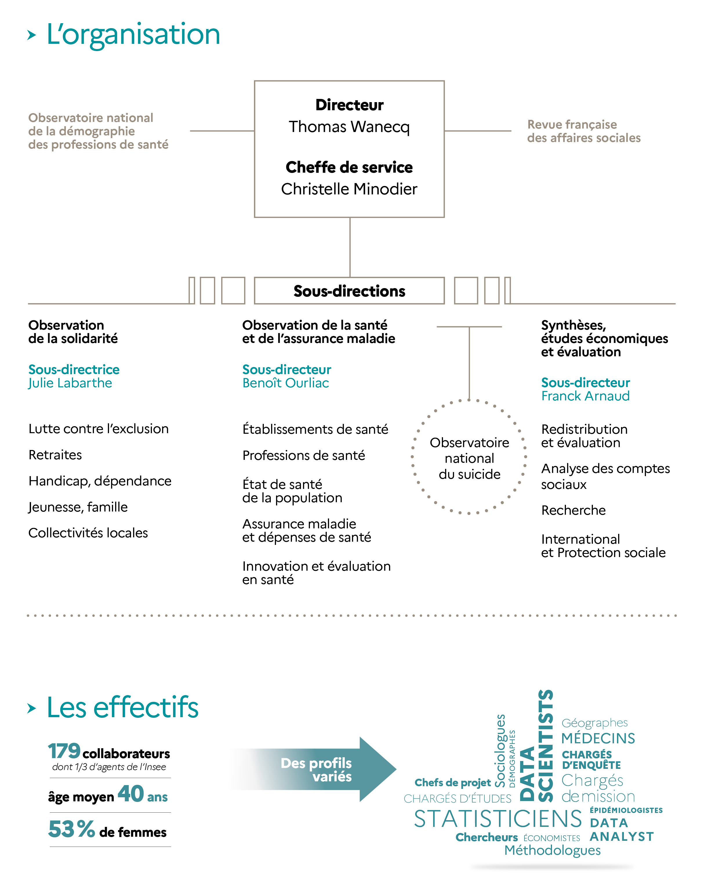 - Effectuer des travaux de synthèse : Les Comptes nationaux de la santé, Les Comptes de la protection sociale, L’État de santé de la population en France, La Santé des femmes…