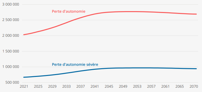 Lecture > En 2070, 2,69 millions de seniors seraient en perte d'autonomie, dont 0,94 en perte d'autonomie sévère.